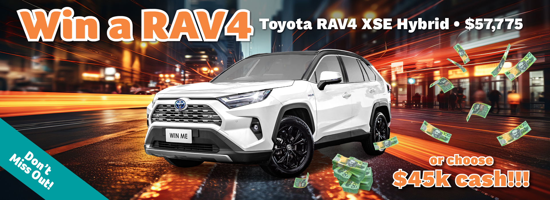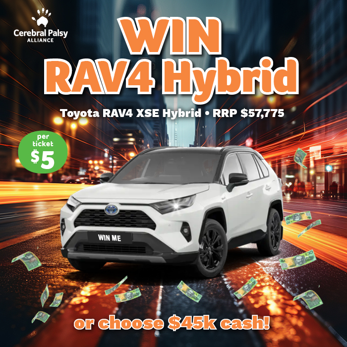 Enter the Cerebral Palsy Alliance Raffle for a chance to win a brand-new Toyota RAV4 XSE Hybrid or $45,000 cash.